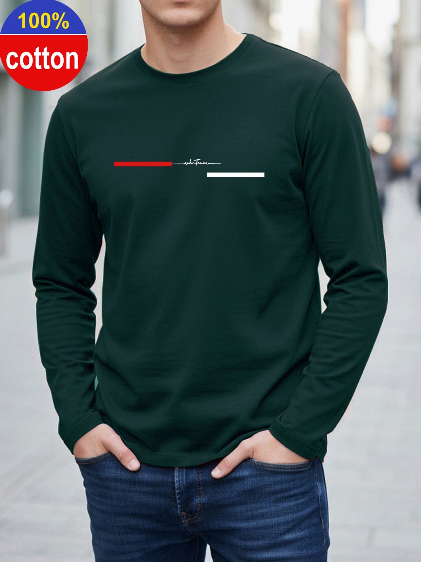 Men's 100% Cotton T-Shirt, Simple Print Design, Basic Cotton Top for Men, Suitable for Daily Summer Wear