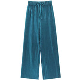 Women Fashion Summer Wide Leg Pants Pleated Ice Silk Trousers Elastic Waist Loose Casual Pants