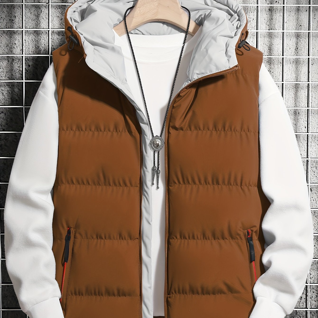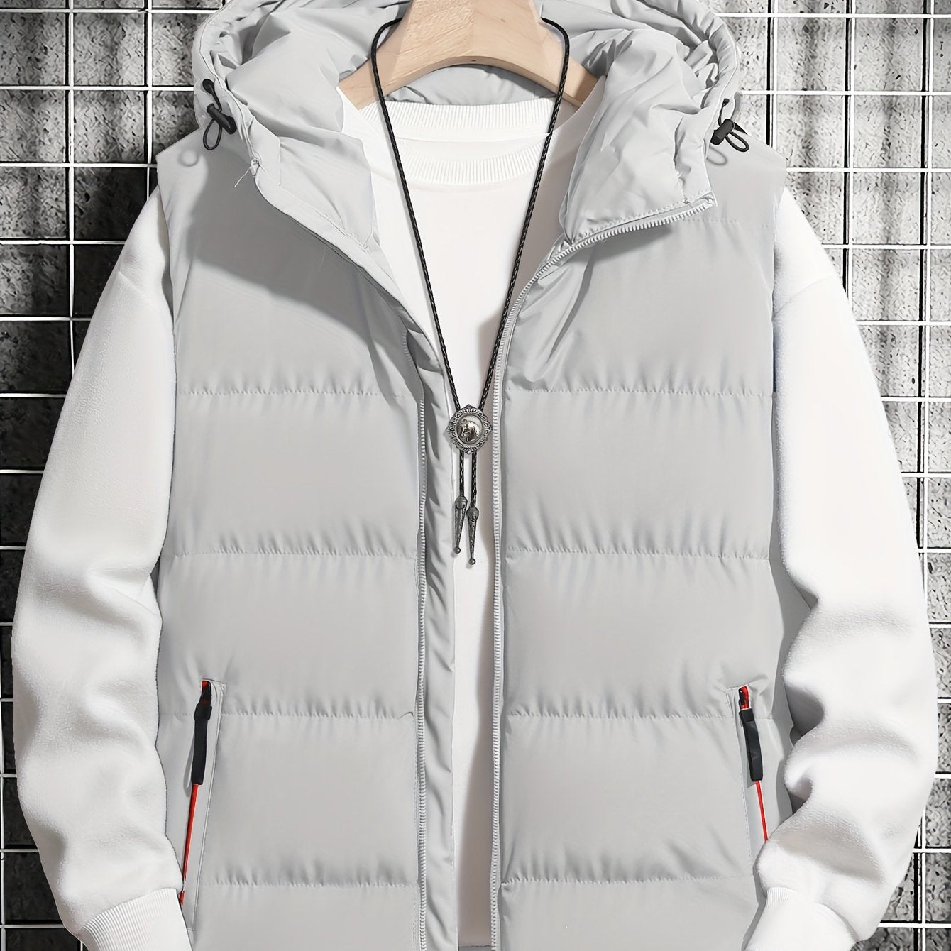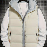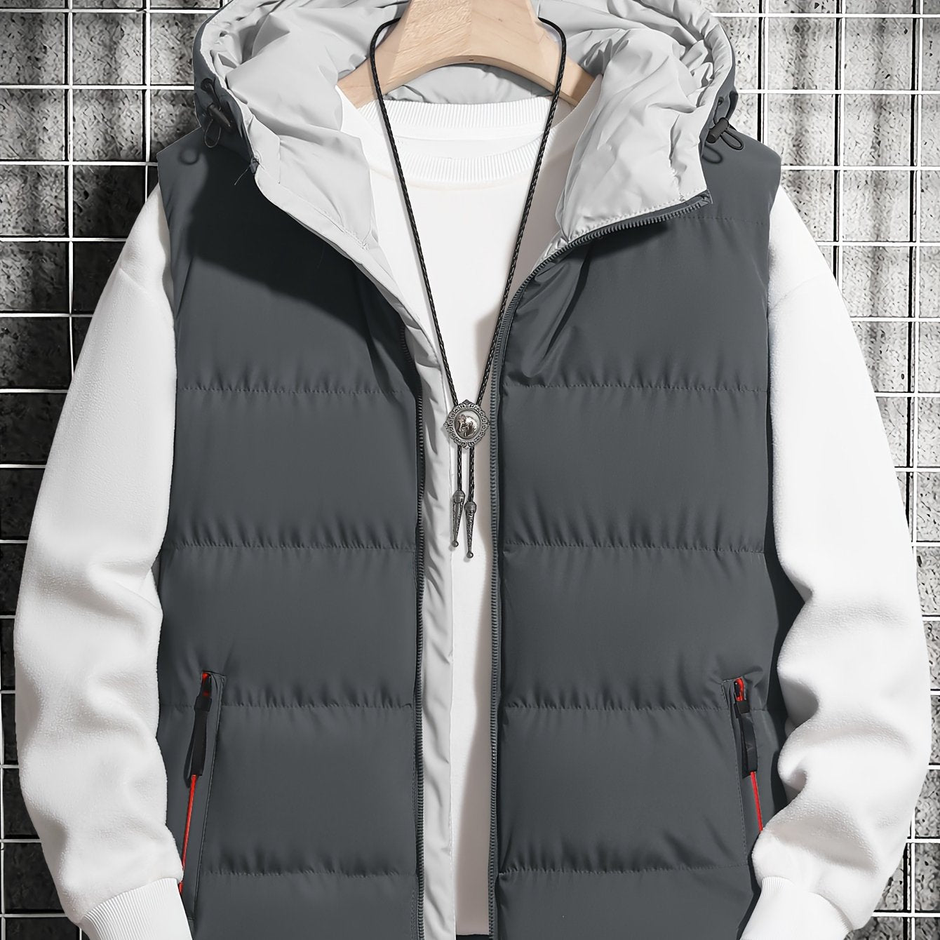 Men's Casual Hooded Puffer Vest, Regular Fit Solid Color Autumn/Winter Vest With Pockets, Outdoor Cloth